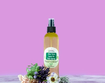 Aloe vera oil hair spray. Aloe vera is rich in vitamins minerals and enzymes source that make it especially good at moisturizing and volumizing your hair. Adds superb reflective shine and makes hair super silky thereby preventing knots. The gel found inside the leaves is great for moisturizing the skin and hair.