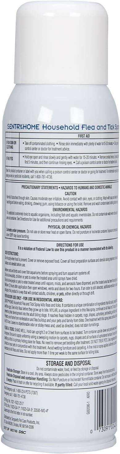 Sentryhome household flea and tick spray reviews. Remove and wash contaminated clothing before reuse. Can cause skin irritation. Sentry Home Household Flea and Tick Spray for Pets kills fleas and ticks.